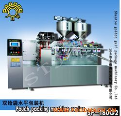 双给袋水平式全自动包装机SP-180G2适用于固体类:糖果、饼干、花生、青豆、开心果、酱菜、膨化食品等。