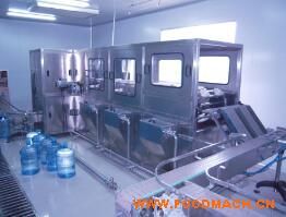 QGF系列五加仑灌装机,三加仑灌装机,桶装机,大桶灌装水生产线主要应用于容量在3-5gallon之间的瓶装水的生产,不同的型号能够提供100-3000瓶/小时的生产能力。整条生产线的生产流程为:空瓶由输送带稳定地输入拔盖机。拔盖机用来拔掉盖子,盖子经过清洗和消毒以后可以再利用。随后瓶子进入外刷桶机进行全方位的刷。经过全面的外部清洗以后,瓶子进入冲洗,灌装,旋盖机组,由水处理系统提供纯净水用于PET的冲洗和灌装。旋盖完成以后,瓶装水通过输送带进入热收缩机。在热收缩机内部完成瓶盖收缩膜包装。整个生产过程由PLC控制自动运行。控制面板可以很直观的监测到设备每个部分的工作状态,易于操作。