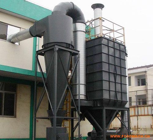生物质锅炉除尘器其处理的工艺是,将每台锅炉生产过程中产生的烟气,分别进行处理。锅炉产生的烟气。粉尘由吸尘管道进入旋风除尘器,此时烟尘中的大颗粒在旋风除尘器的离心力的作用下进行分离,大颗粒粉尘由旋风除尘器排出,细小颗粒粉尘进入锅炉除尘器。经过滤袋过滤,通过脉冲吹打将粘附在布袋表面的粉尘先集中在除尘器的灰斗内,利用下料控制器进行回收或利用。经布袋除尘器处理过后的净气通过风机由烟囱排入大气。经过布袋除尘器对锅炉含尘烟气的处理,可减小烟尘对周边环境的污染,达到清洁的生产目的。根据该公司要求,我公司提出以下设计方案。