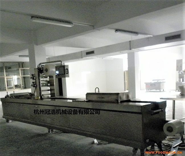 自动拉伸膜真空包装机主要功能:自动拉伸膜预热成型容器-自动或人工充填--自动真空封切-废料处理-自动成品输出。用户可根据实际需要,选配一些其它功能(自动打码,封闭门窗,杀 菌装置,层流罩等)。