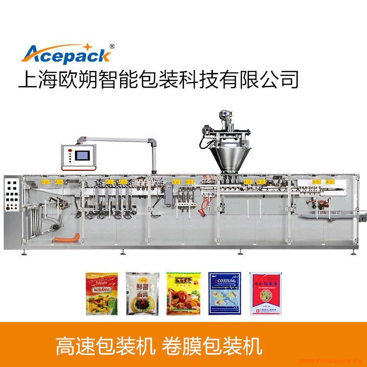 欧朔牌高速四出袋包装机 自立袋包装机 自立袋灌装机专门为小袋高速包装而设计,满足小袋高速包装的需求,有数字化规格切换,简单方便,牵袋更稳定,偏差更小,牵袋扭矩大,适合大规格。