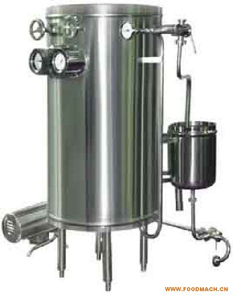 超高温瞬时灭菌机,在主机内装着压力容器—高温桶,用作充盛压力蒸汽。桶外的主要设置是螺旋形双套管,用作对进、出物料的冷热交换;桶内的主要设置时螺旋形单管,用作间接受热。 物料的灭菌过程。物料通过供料泵进入双套盘管的外层流道、由内层流出的热料间接加热而得到预热,当物料进入设置在高温桶内的高温盘管时,由于桶内的蒸汽间接加热而被加热到需要的灭菌温度,然后在桶外单旋管内保温而使物料细菌被杀灭,当回到双套盘管时,物料便进入内层流道,被外层冷料所冷却,从而使出料温度显著下降(一般低于65℃)。如工艺上需要提高或降低出料温度时,可启用角式截止阀,让它接通热源(蒸汽)或冷源(水或冰水等)让它们进入双套管下端的外层流道。 节流阀是可以调节的,一方面让物料维持在一定的压力之下, 使其沸点温度提高,以防止汽化:另一方面,也作调节流量用。物料*后经三通旋塞除料。该旋塞下端接着旋管,其出口将着贮槽,当需要时,可旋动旋管对准溢流管。进料三通旋塞的上端与贮槽接通,下端则与料源管道相连接。欢迎新老客户洽谈合作 ,共同发展