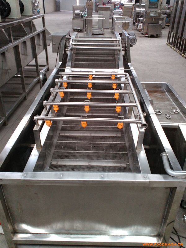 气泡清洗机是大枣,蔬菜,水产生产线中的重要产品,主要用于大枣,蔬菜,水产的清洗。气泡清洗机的原理主要是利用箱体前部分设备箱体中注适量的水,经过加热管将水温加热,原料在经过箱体时,会与气泡机和水的结合作用下做翻滚状态,并随网带不断向前推进,在出水面时,*设有喷淋头,高压冲洗。