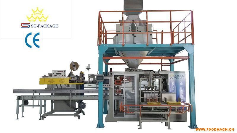 水产饲料全自动包装机组/对虾饲料重袋包装机组适用范围:粉体、颗粒、饲料、片状原料(如饲料、水产饲料、对虾饲料、蟹料等)生产过程中的供袋、取袋、开袋、套袋、计量、充填、卸袋、夹口整形、折边缝口封袋等作业全部实现自动化。
