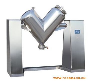 V型高效混料机是新型、高效、精细容器回转、搅拌型混合设备。用于各种粉状、粒状物料的均匀混合,具有很高的混合度,对添加量很少的配料同样能达到较好的混合度。该机是本公司的专有技术产品,采用机械密封,粉料不会泄漏,轴承使用寿命长。该机混合效率高、工作效率较高、劳动强度低、操作方便。可广在磁体、陶瓷、化工、制药、饲料等行业使用。VH型高效混合机由“V”形筒、机械密封、机架、减速传动、搅拌叶片等构成。该机的工作过程是:把需混合的几种物料通过真空输送或人工加料投放到“V”形筒内,上好筒盖,开起设备,“V”形筒及搅拌叶片同时转动,旋转的“V”形筒使筒体内物料产生紊乱翻滚混合,高速旋转的搅拌叶片打碎结团物料,使物料在筒体内快速混合。V形混合机工作过程无死角,无沉积,可使混合的物料快速达到均匀一致的效果。