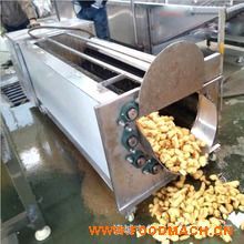 大姜萝卜中草药清洗去皮设备 主要由电机、变速器、毛棍组等构成,是我厂吸取了国内外对根薯类加工机械的特点设计制造的,采用毛刷摩擦原理,广泛适用于圆形,椭圆形果蔬比如生姜、胡萝卜、山芋、土豆、红薯、等根薯类蔬菜的清洗、脱皮。瓜果毛辊清洗脱皮机具有外形美观和操作方便,清洗脱皮容积大、效率高,耗能小,可连续清洗,操作简单,使用寿命长等特点,清洗棍为经特殊工艺处理的尼龙线绳轧制材料,脱皮为加硬材料,两者皆经久耐用,耐磨性能相当好。全机采用优质不锈钢材质,旋转出料,不锈蚀、清洁卫生。 新款毛刷机是结合外国进口机器的设计而改进的,把整个机身抬高,电机放置底部,机器下方的废料收集区有足够的空间方便工人清除废料,而新增滤网,可以完全隔开废渣和废水,废渣在滤网上方轻易刮走,而废水在滤网下方自动排走。