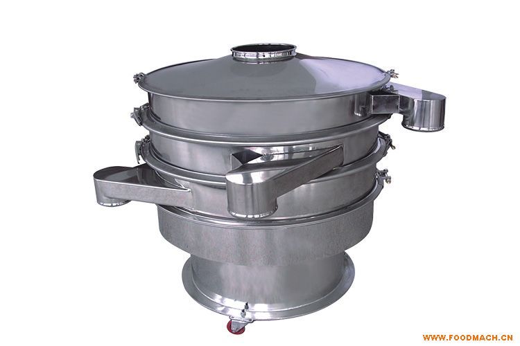 旋振筛是一种高精度细粉筛分机械,其噪音低、效率高,快速换网需3-5分钟,全封闭结构,适用于粒、粉、粘液等物料的筛分过滤。旋振筛是由直立式电机作激振源,电机上、下两端安装有偏心重锤,将电机的旋转运动转变为水平、垂直、倾斜的三次元运动,再把这个运动传递给筛面。调节上、下两端的相位角,可以改变物料在筛面上的运动轨迹。旋振筛适用于流水作业,是粗小颗粒比例不等过筛连续出料的理想设备。
